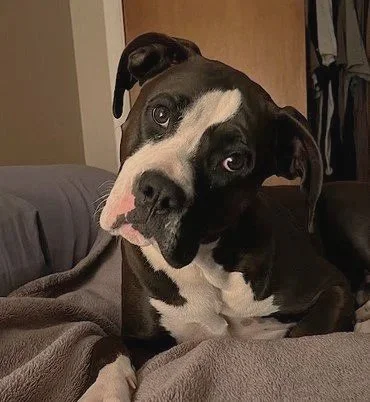 Chleo (previously Bliss) is our little snuggle butt. She loves sitting in the sun with her brother, sleeping with her little girl, coming to her little boy’s travel baseball games, and terrorizing the cats. She always brings her kind eyes and love to every room she enters. We couldn’t imagine our lives without our little pibble lady!!