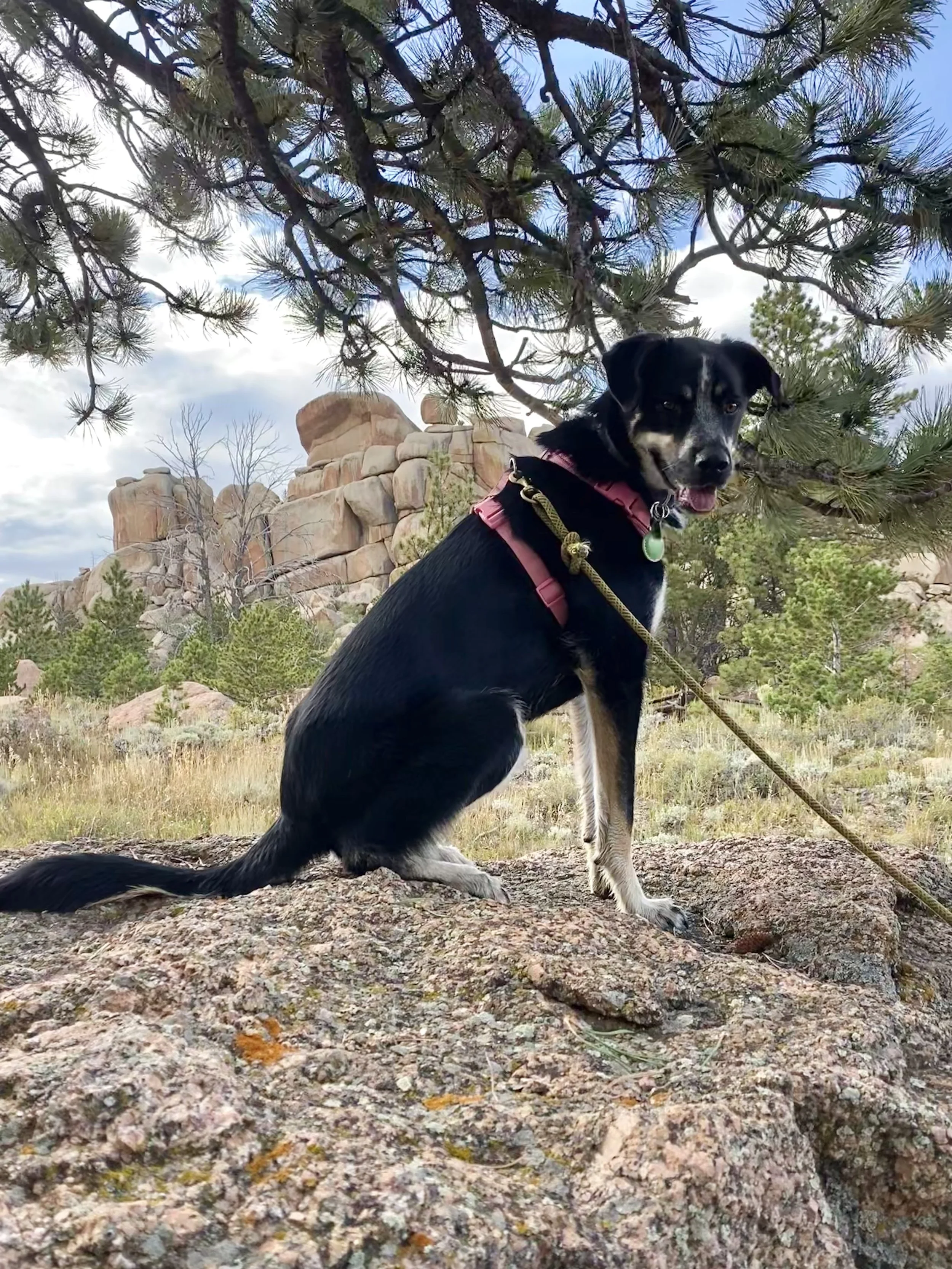 Hopper is such a wonderful dog! And maybe a little spoiled (that one photo is from a restaurant that had a dog menu). We just celebrated his 3rd birthday and went on lots of adventures this year. He is our comic relief and a good cuddle bug. We moved south to CO earlier this year and he’s loving the warmer weather! But we still visit our friends in Laramie!
